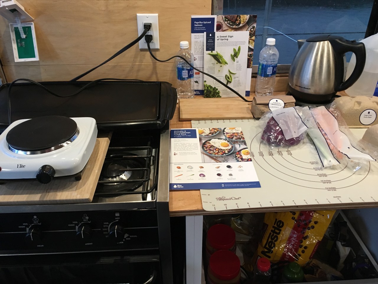 ‘IMG_1523’ Published August 3, 2017 at 4032 × 3024 in Chapter 10: We Moved Aboard Our Cruise-a-Home!! Electric burner, plywood counter, Blue Apron dinner. I can do this! Leave a comment Cancel reply Δ